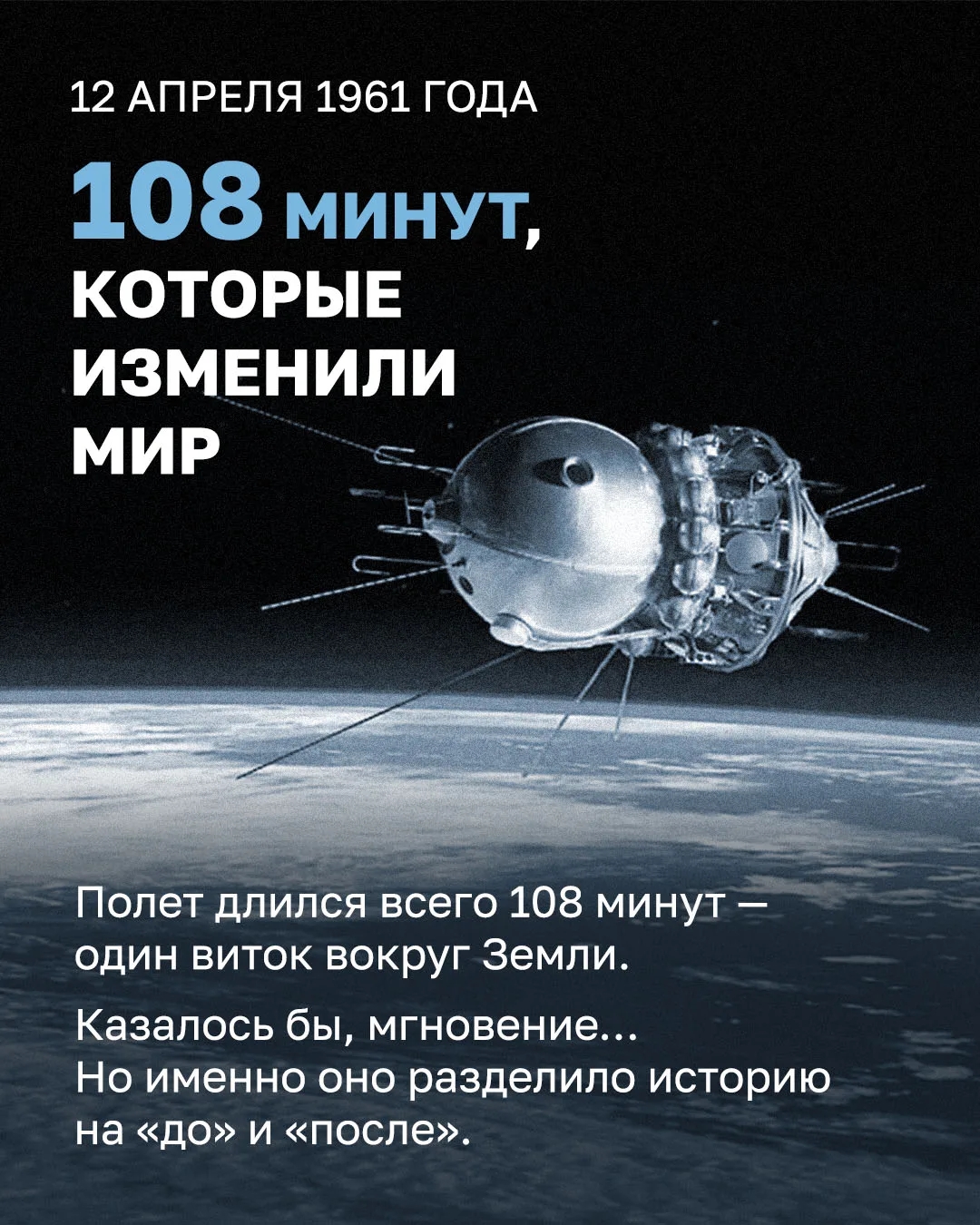 #ВэтотДень 65 лет назад Юрий Гагарин навсегда изменил ход истории, став первым человеком, совершившим полет в космос.