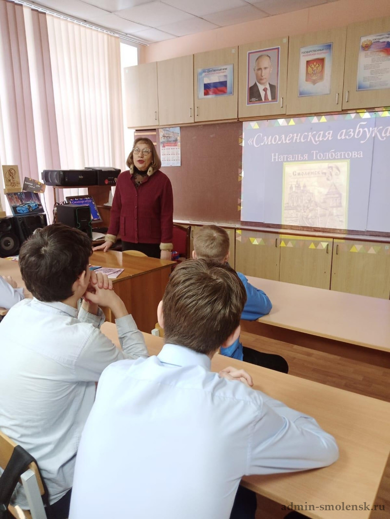 Наталья Владимировна Толбатова подарила для библиотеки Стодолищенской школы свою книгу «Смоленская азбука», в которой в стихотворных зарисовках, расположенных в алфавитном порядке, знакомит читателей с достопримечательностями Смоленска.
