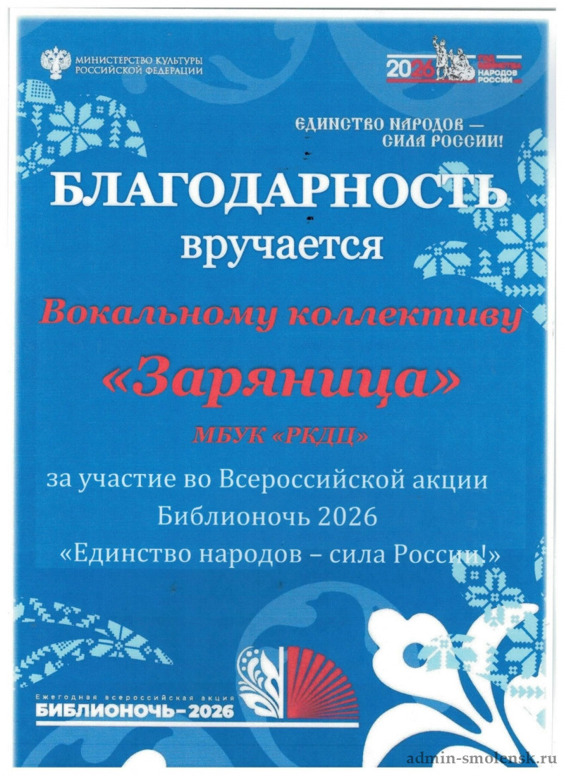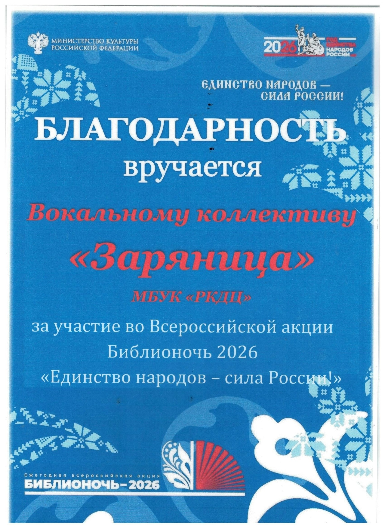 Солисты нашего коллектива, приняли участие во Всероссийской акции Библионочь 2026 "Единство народов - сила России!"