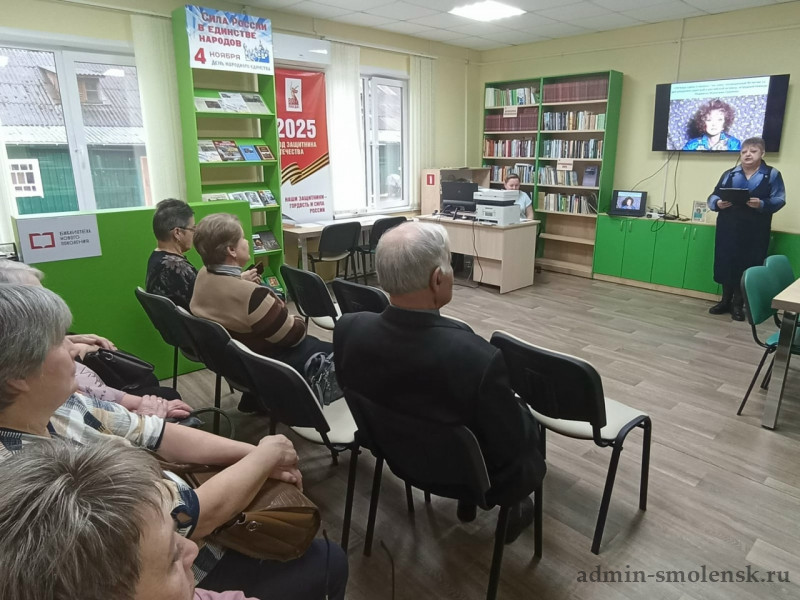 Слушатели познакомились с наиболее значимыми моментами биографии Людмилы Марковны Гурченко. Рассказ сопровождался демонстрацией презентации, на слайдах которой гости увидели фотографии Гурченко в детстве, юности, в начале творческой карьеры. Прозвучали записи песен в ее исполнении. На мероприятии были представлены автобиографические книги народной артистки, гости посмотрели кадры из известных кинофильмов с участием актрисы «Вокзал для двоих», «Любовь и голуби» и других. Встреча понравилась членам клуба «Вдохновение» и подарила всем много приятных минут.