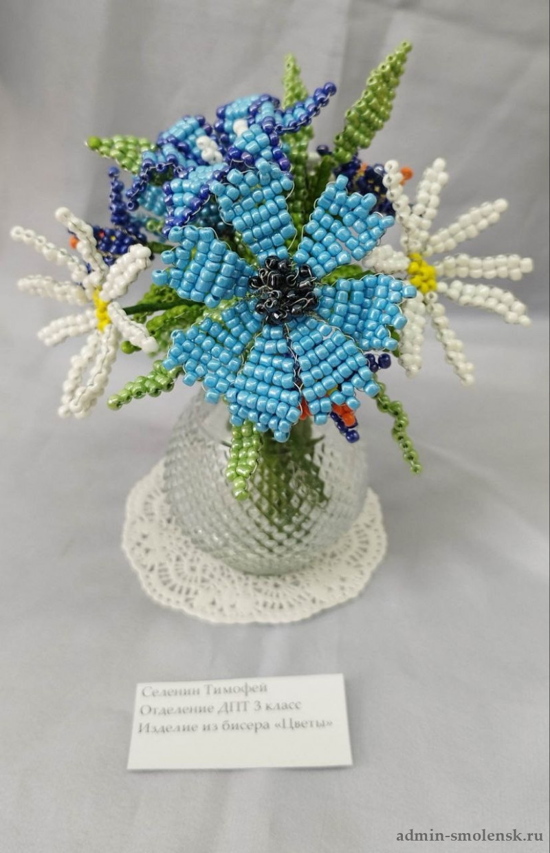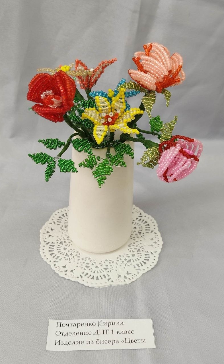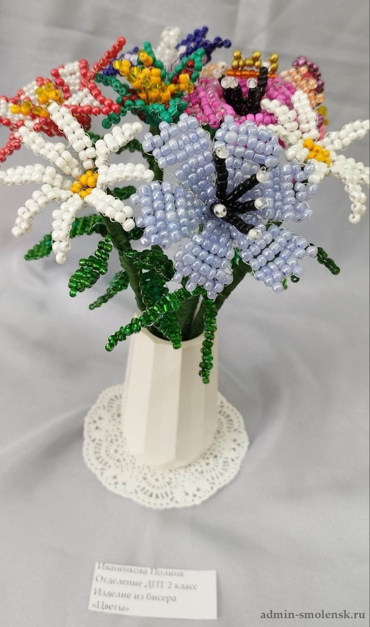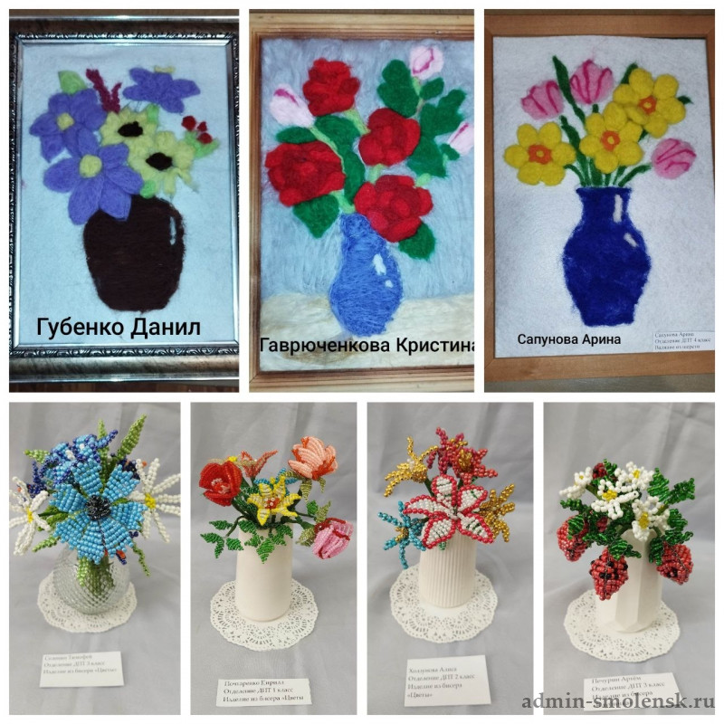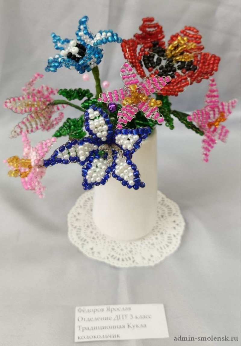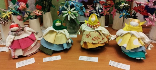 На ней представлены изделия из бисера «букеты цветов», валяние из шерсти, обереговая кукла-колокольчик, а также другие творческие работы.