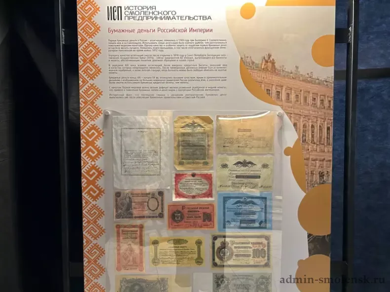 В Починке открылась передвижная выставка «История Смоленского предпринимательства». Её создали Центр «Мой бизнес» и Министерство инвестиционного развития региона при финансовой поддержке Президентского фонда культурных инициатив. Экспозиция рассказывает о том, как развивалась хозяйственная деятельность, торговые связи и предпринимательские практики в регионе. От древнего пути «Из варяг в греки» до индустриальных преобразований XIX века и особенностей местной промышленности начала XX века.
